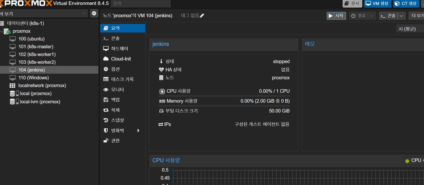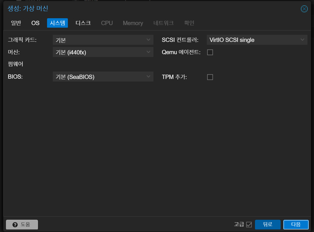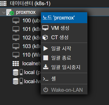 데이터센터 - proxmox 우클릭하여 VM 생성 클릭