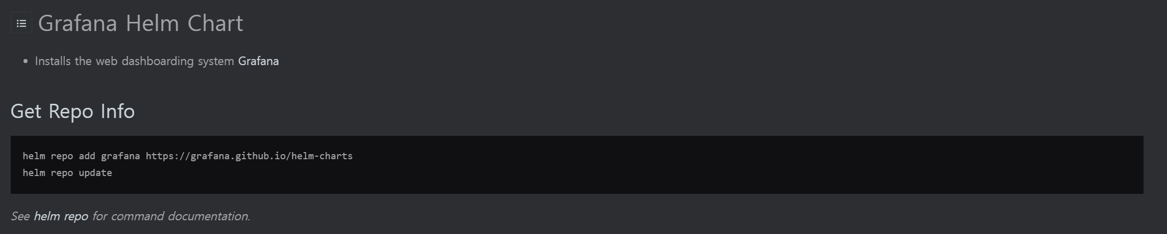 helm search repo grafana # 필요한 차트를 찾기