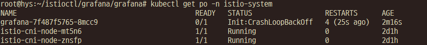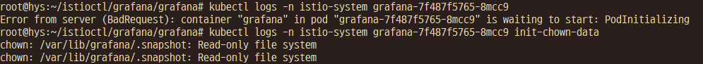 service mesh 구성 중에 nas에 grafana 데이터를 배포하는 과정에 에러가 발생하여 기록합니다.