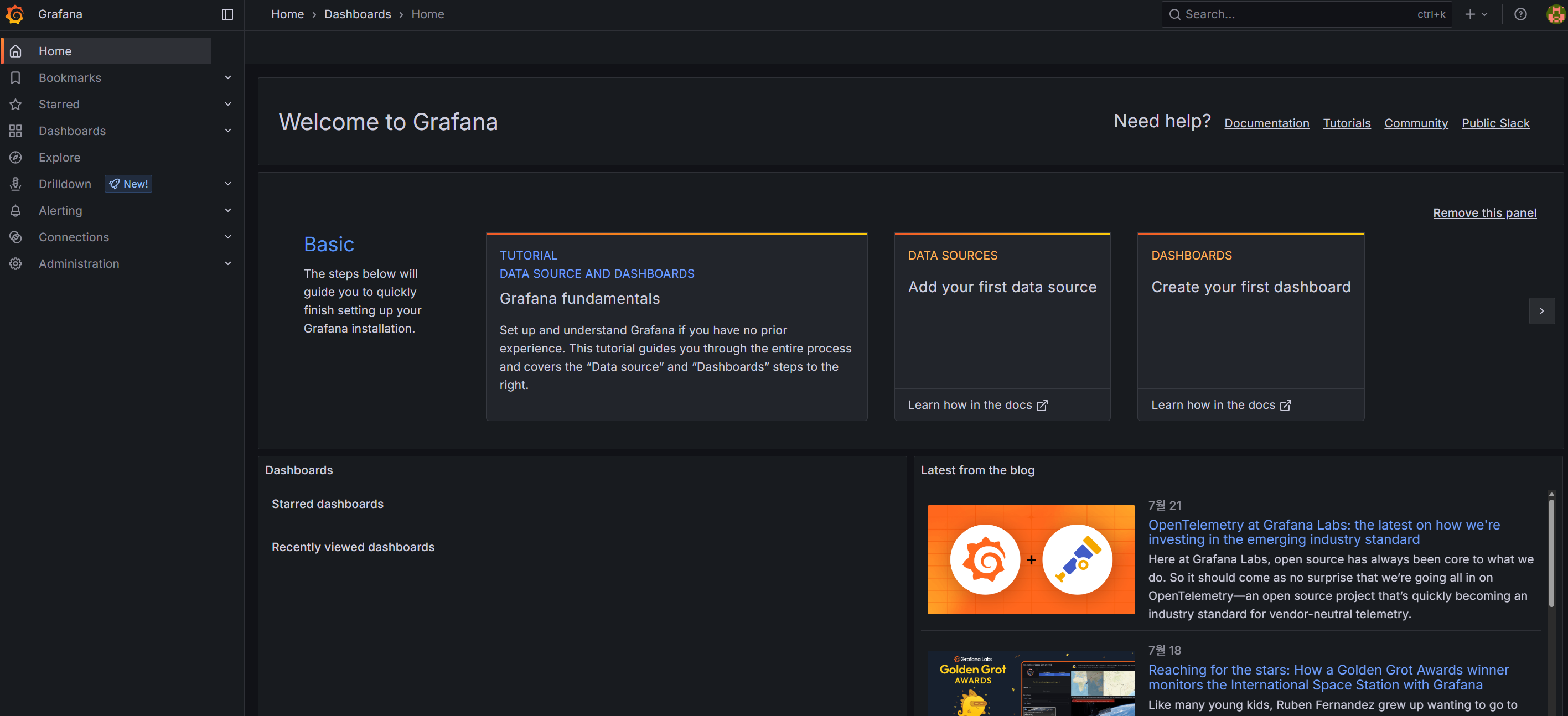 아래 URL로 들어가서 grafana repo를 찾습니다.