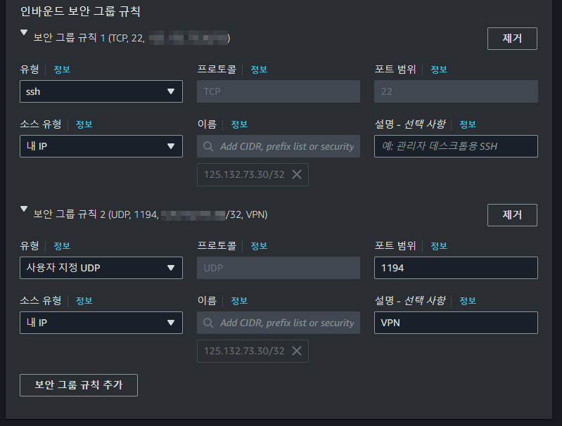매치 : 출발지, 목적지, 인터페이스 등 지정