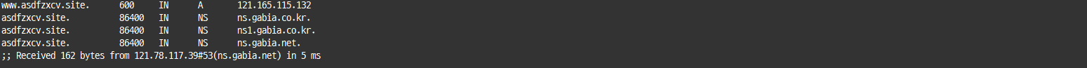 4. ns.gabia.net 라는 네임 서버에서 해당 URL에 대한 IP를 반환합니다.