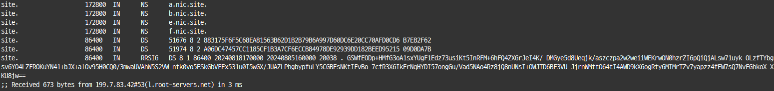 2. l.root-servers.net. 라는 루트 네임 서버에서 .site 라는 도메인을 관리하는 TLD 네임 서버(*.nic.site.)로 다시 질의를 합니다.