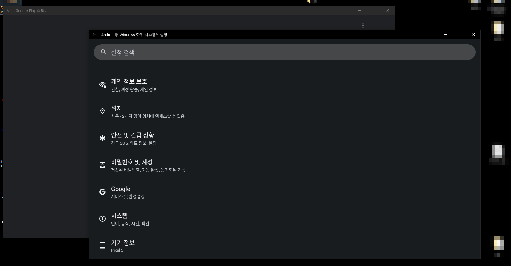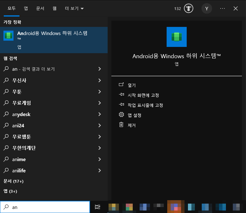 검색 - Android용 Windows 하위 시스템 실행
