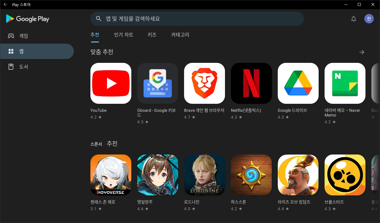 게임이나 앱도 정상적으로 실행됩니다. (안되는 앱도 종종 있긴 합니다. 가상화니 그러려니 합니다.)