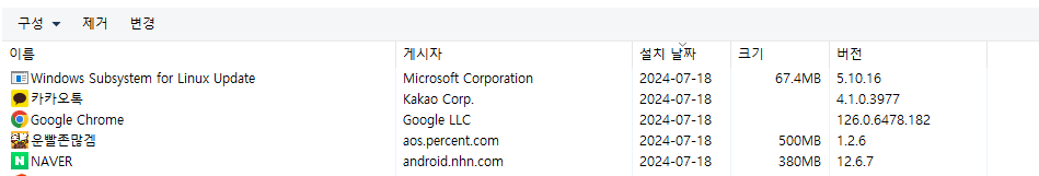 제어판에서 보면 설치된 앱들도 확인 할 수 있습니다.